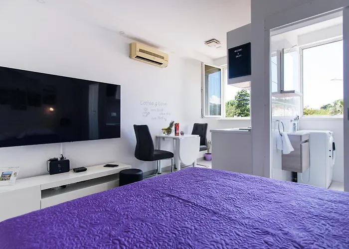 O La Gaby Studio Apartment Dubrovnik de 20 m² está localizado a apenas 1.8 km de Muralhas de Dubrovnik e a 25 minutos a pé de Palácio de Sponza. Os hóspedes podem usar Wi-Fi tanto para fins de negócios quanto de lazer.